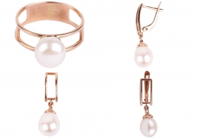Комплект ювелирный с белым пресноводным жемчугом