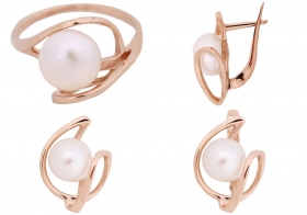 Комплект ювелирный с белым пресноводным жемчугом
