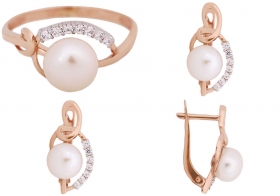Комплект ювелирный с белым пресноводным жемчугом